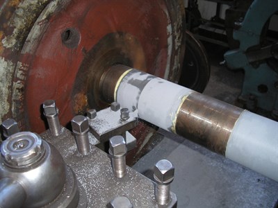 Application was carried out in accordance with Belzona Know-How System Leaflet MPT-1. Shaft was turned down and left with coarse thread before being rebuilt with Belzona 1311 followed by machining back to original diameter.