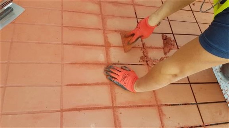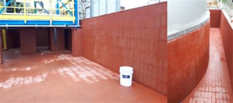 Grouting tiles with Belzona 4181 for protection against nitric acide.