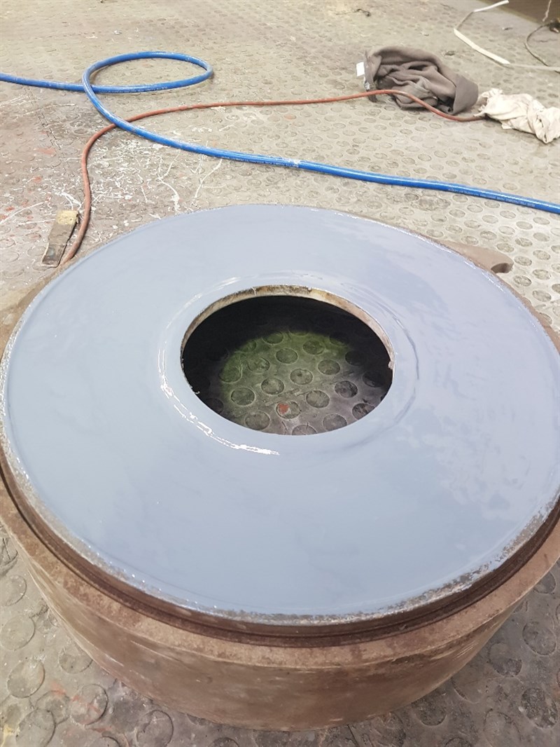 The customer requested a coating to reduce overall maintenance requirements and increase time between routine shutdowns. A number of coatings were considered, but Belzona 5821 gave the best balance between cost and performance for the light erosion resistance required. Re-building was required prior to the application of the coating. Instead of conventional weld repair Belzona 1111 was selected due to ease of application (no machining required) and compatibility with the Belzona coating.