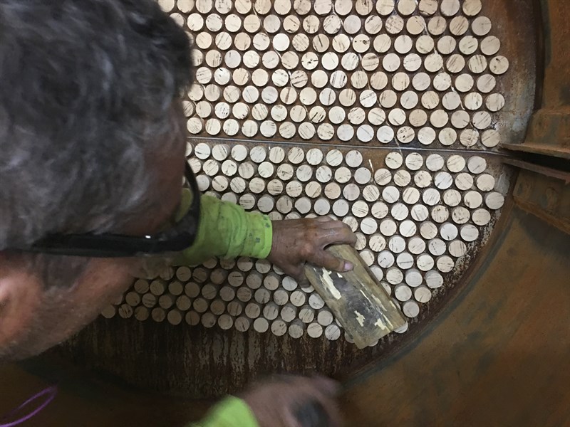 4. Both ends of the chiller and the water boxes were coated and the corks were blown out and the tubes cleaned out to turn over to the owner.