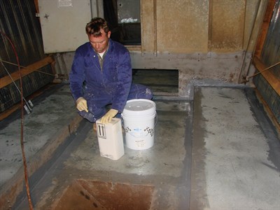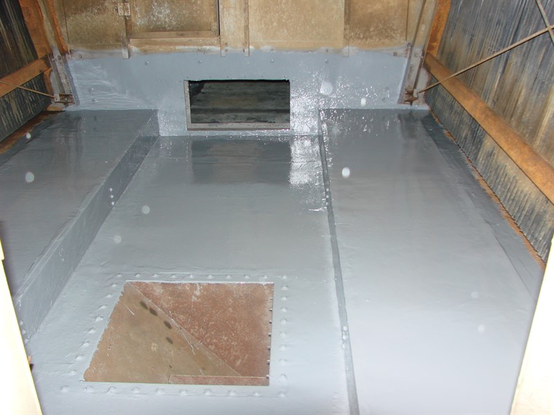 Application was carried out in accordance with Belzona Know-How System Leaflets HEX-12 and GSS-3. The floor was abrasive blasted and new sheet metal cold plate bonded in place with Belzona® 1121. The seams were sealed with Belzona® 3121. Two coats of Belzona® 5811 were applied over the cold well surfaces.
