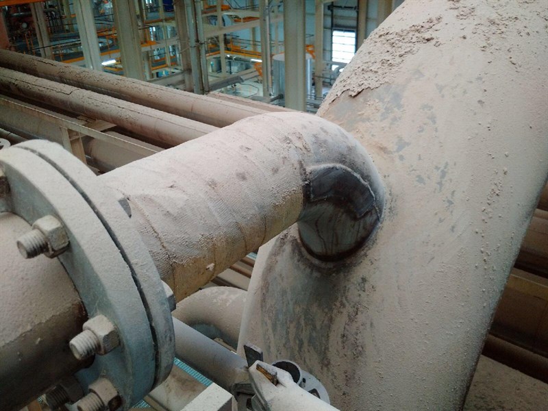 Problem: This water pipe was leaking due to antibacterial agents present in the water damaging the substrate and causing corrosion pitting.