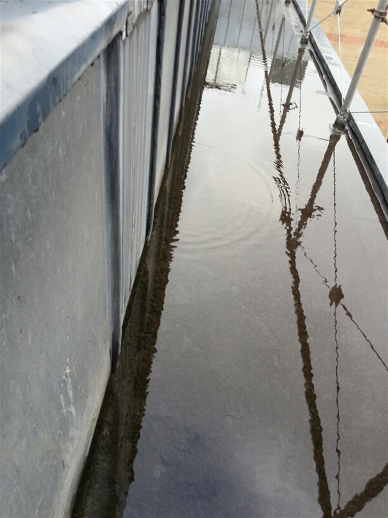 Problem: There were different substrates used for the roof & flashing, including felt and lead. There were also handrails & bolts to be removed that left gaps that had to be waterproofed. In particular, the balconies had developed ponding water,which, due to being north facing rarely dried up.