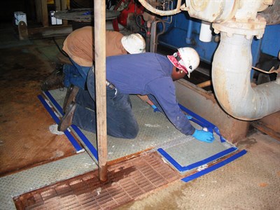 Total restoration of production platform deck using Belzona Cold Plate bonding system.