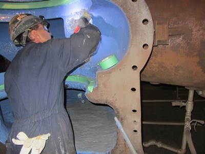 3. Application of Belzona 1341 Blue in progress.