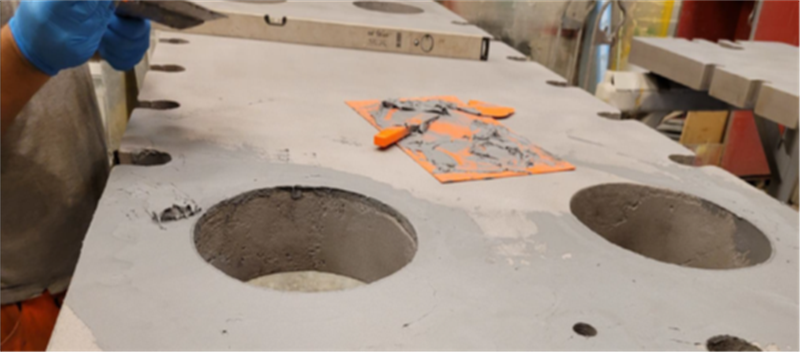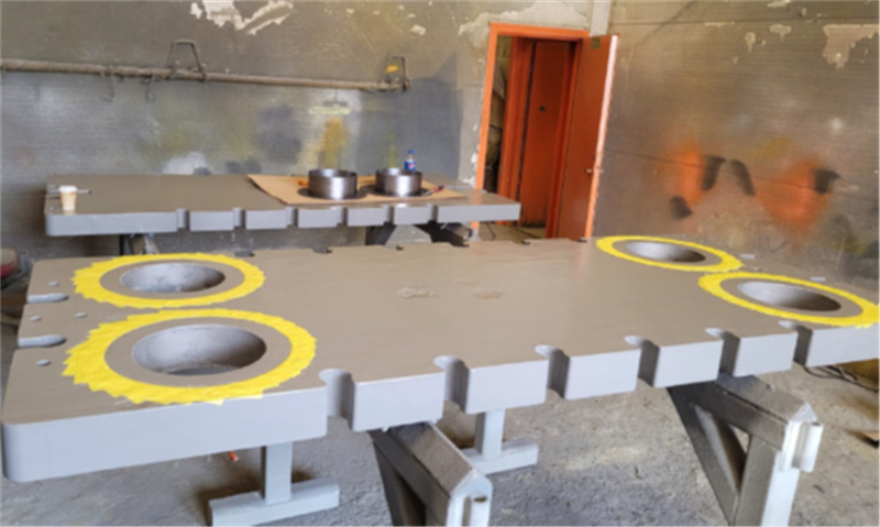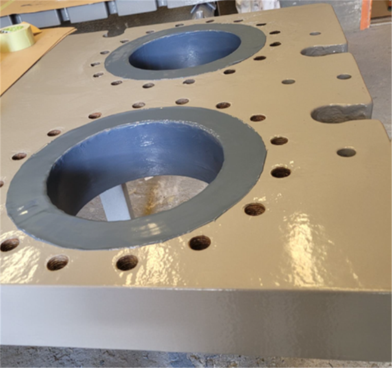 3. Endplates coated with Belzona 1391S (Spray applied 2 coats a 375µm) and prepared for forming new bushings with Belzona 1391 Ceramic HT using metal formers.