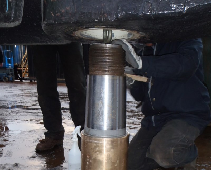 Problem: Seawater had corroded the pintle pin and housing enough so that the pin was a loose fit in the housing.
