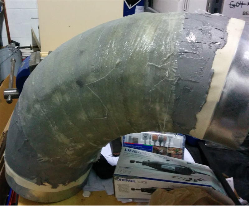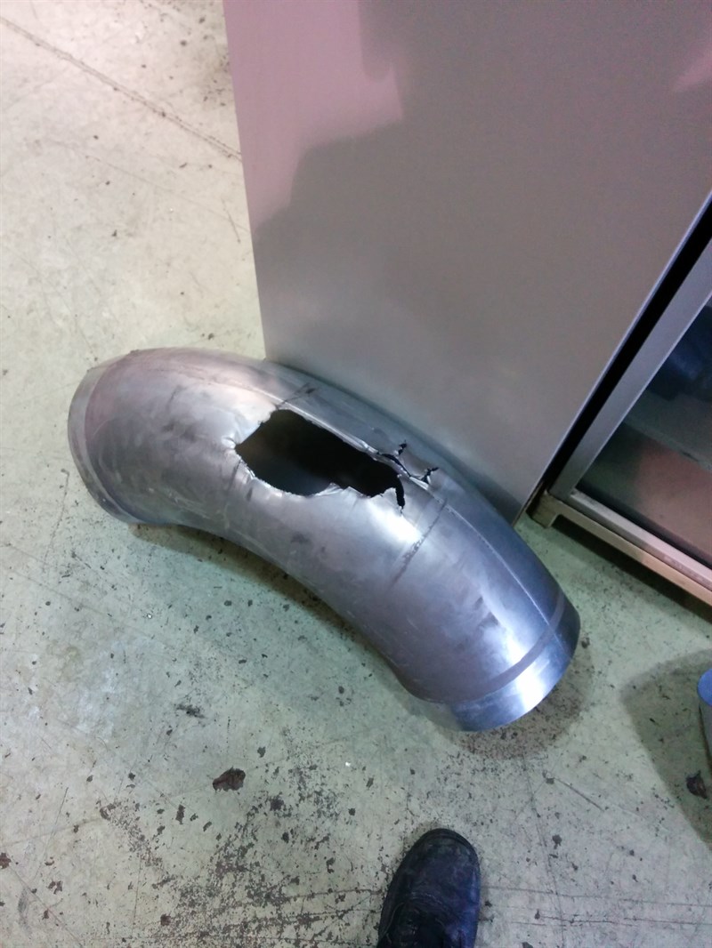 Problem: The blast material going through the pipe wore a hole to the side of the pipe elbow.