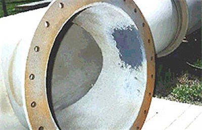 Problem: Corrosion as well as erosion deteriorated the entire internal surface of this sludge water piping structure. This pipework transports sludge water from the sedimentation tanks to the digester.