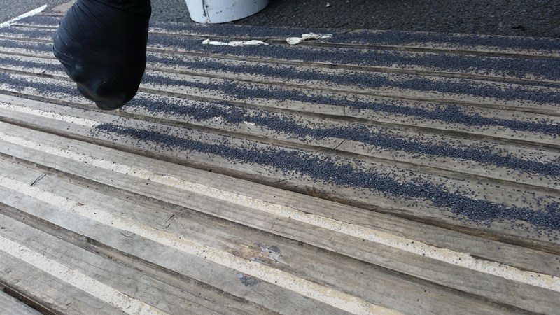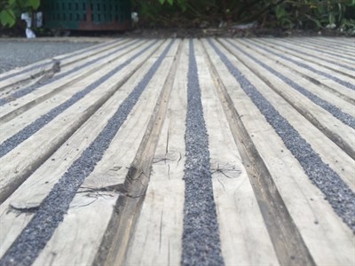 Problem: Wooden decking areas in the playground became very slippery in certain conditions. There had been an injury claim against the school so they wanted to retro-fit a grip system to make it safer for the children.
