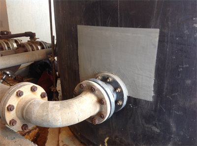 Problem: UV Damage and possible loading forces to the HDLPE polymer tank resulted in a hairline crack above a 4" flange. Replacement of the tank was several years away still and the repair method had to be compliant with potable water standards.