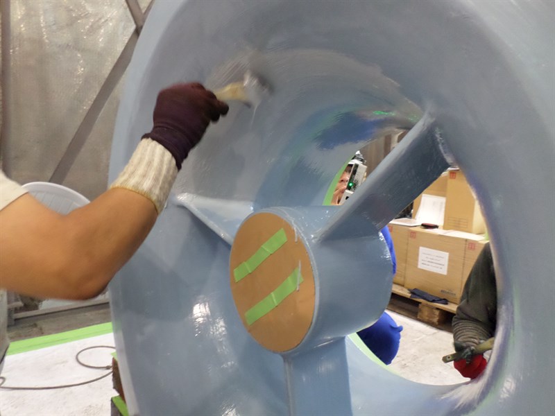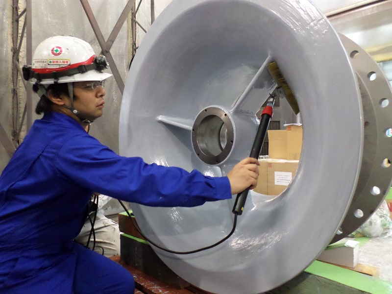 Application was carried out in accordance with Belzona Know-How System Leaflet CEP-3, at the fabrication site of pump manufacturer in Japan. A suction bell and a discharge bowl were blasted and coated with NSF approved Belzona® 1341 internally. Blow holes found were filled with Belzona® 1111 to achieve smooth surfaces prior to the final coat of Belzona® 1341.