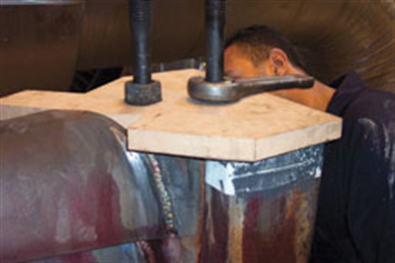 Formers were cut from MDF (Medium Density Fiber Board) to match the repair areas on the various flange areas. Belzona is a proven effective long term repair for this type of damage.
