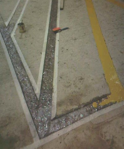 Application was carried out in accordance with Belzona Know-How System Leaflet FPA-4. A channel was cut into the floor about 160mm wide and 5mm deep. A self-levelling screed was mixed using 3:1 Belzona 5231 and Belzona 9221, before being poured into the channel.