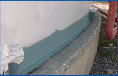 Problem: Bitumen sealant had failed to seal beneath the tank base allowing water pentration.