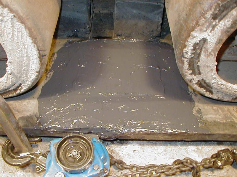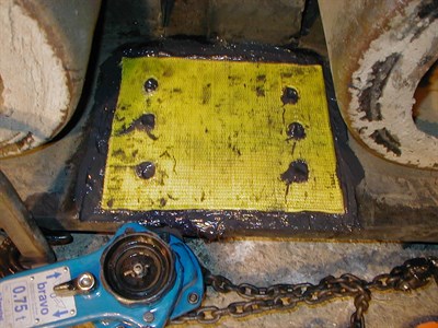 RUBBER TRACK ON CRANE REPAIRED WITH BELZONA