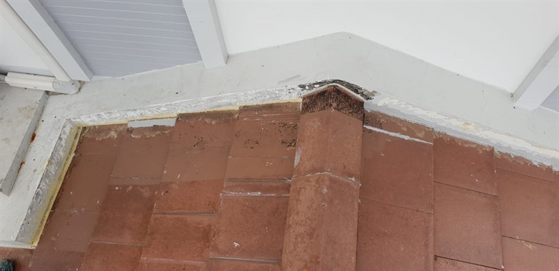 Problem: Rain water was pooling and penetrating under the roofing tiles. Several attempts were made with silicon and mastic materials to address the problem.