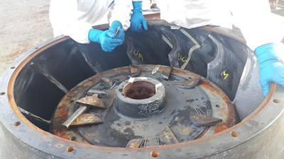 The application was carried out in accordance with Belzona Know-How-System Leaflets CEP-1, CEP-3, CEP-4 and CEP-10. Damaged vanes were removed and reinstalled with mechanical metal stitching repair techniques. The surface was then coated with Belzona 1341. The edges of the diffuser blades were protected from further cavitation damage with Belzona 2141.