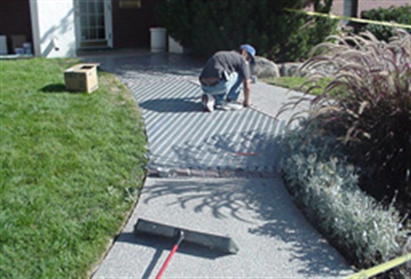 Problem: Sloped walkway with exposed aggregate became very slippery when wet, creating a safety hazard.