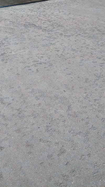 Problem: Fresh concrete section that was poured developed severe spalling and pits. The customer was concerned that this would open up this section for water to penetrate the pad and through the winter the water would freeze and cause even worse damage. The customer required a material that would not be smooth and slippery, and they wanted it to "look like concrete".