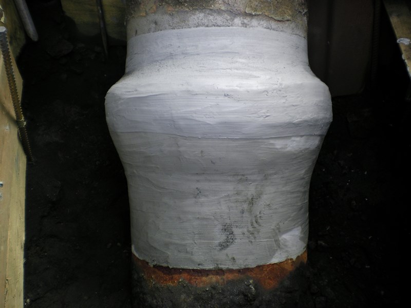 The client asked Belzona for a rapid response and the preparation and application were completed within a day. Because of the restricted access in the pit and the size of the pipe, Belzona 1121 was chosen to conduct the repair throughout due to its longer working life. The external pipe diameters were nominally 67cm, with a flange of 83cm diameter. The final 3 layer wrap was approximately 97cm length, and consumed 96Kg of Belzona 1121. After curing for a day the gas main was reopened and tested at full pressure to the absolute satisfaction of the client.