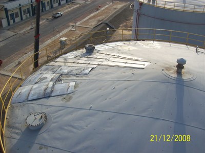 STORAGE TANK ROOF REPAIRED USING BELZONA