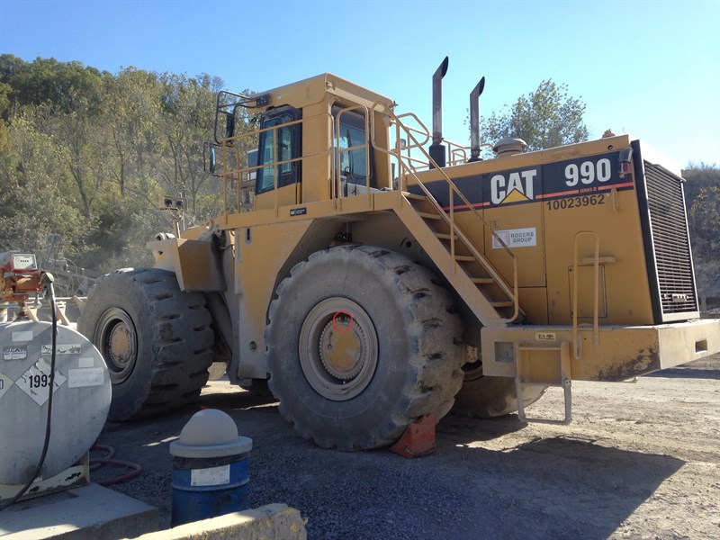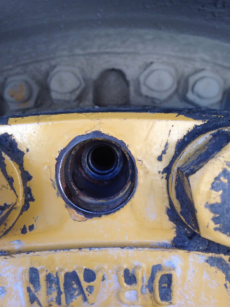 Stripped threads on a Caterpillar 990 Final Drive were leaking oil.