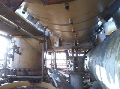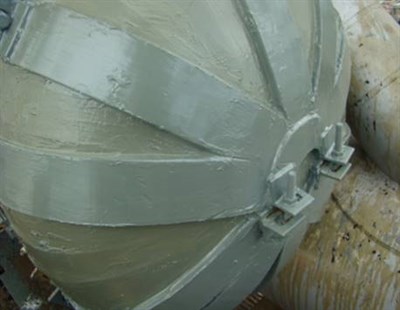 The naphtha accumulator has been previously repaired with fiberglass, a procedure that was not effective and displayed holes in the fiber. Belzona guaranteed to enclose the system with an operating temperature of 115°C and operating pressure of 400 gf/cm², exceeding several critical points, such as the location of the accumulator at the top of the tower at 86 m in height and hoisting 70 kg parts to the top. Inspection was carried out in February of 2015 and it was verified that the installed system is still working well.