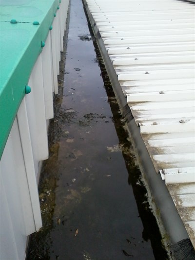 Problem: The client has had consistent water ingress issues from the aluminium gutters, despite repeated attempts to seal the gutter joints and seams with silicone and bitumen products. The showroom area has suffered water damage on a regular basis.
