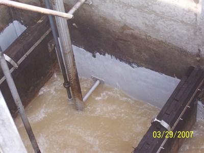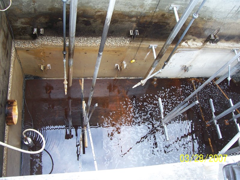 Problem: After years of running 24 hours a day, 7 days a week the sump had erosion and corrosion from chemical attack at the water level.