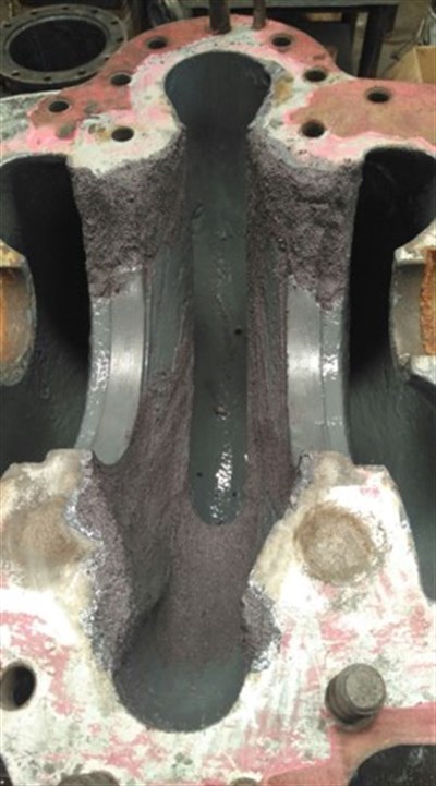 10 years after Belzona 1321 was applied to the split case pump, the coating is now almost completely gone and erosion has removed some of the steel. The customer was happy with the performance of Belzona and wished to utilize Belzona materials to further extend the life of this pump.