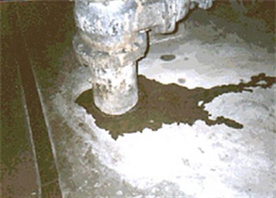 Problem: The concrete has a different coefficient of thermal expansion/contraction than the metal pipe. The result of this difference, is the erosion of the metal pipe at the interface, and subsequent leaks.