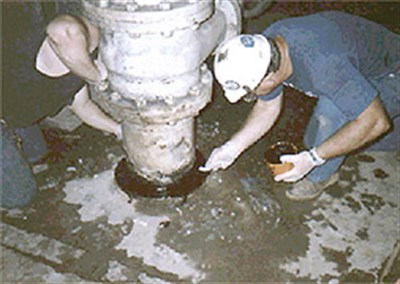 Belzona® 4211 (Magma Stop) was used to stop the active leak, without interrupting the process flow. Once the leak had been stopped, Belzona® 2131 (D&A Fluid Elastomer) was used to encapsulate the repair perimeter and absorb the movement of the two substrates. It is a good idea to rough cut around the perimeter of the Belzona repair and pour the elastomer in this joint to allow for movement.