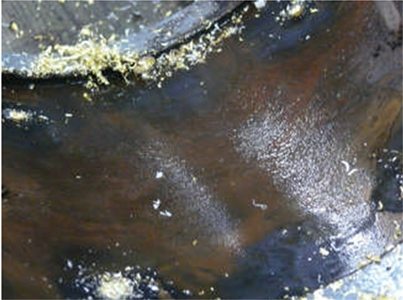 - The damaged bearing had disbonded from the bearing housing which resulted in a corroded surface