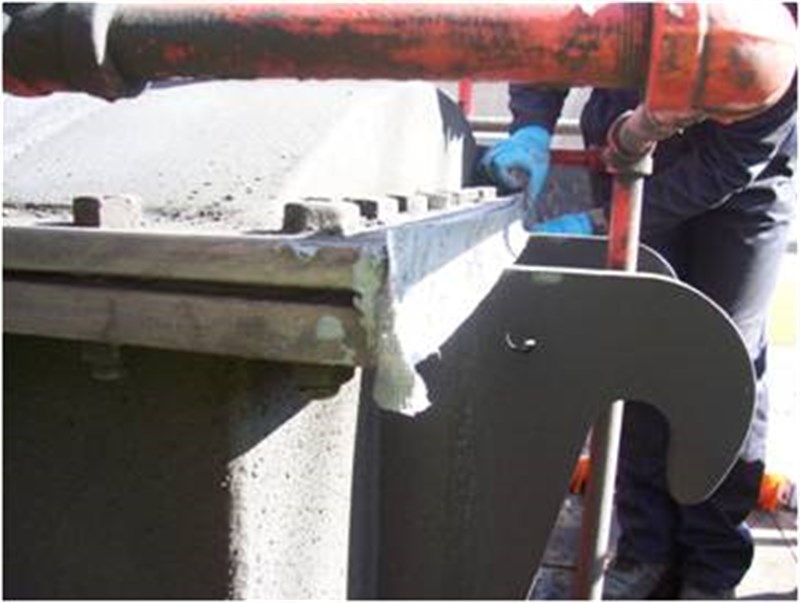 Application was carried out in accordance with Belzona Know-How System Leaflet VPF-11a. MBX Bristle Blaster was used to prepare the surface. Belzona® 9341 (Reinforcement Tape) and Belzona® 1161 then used to seal the flange joint.