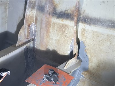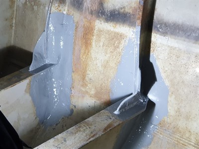 The tugboat had been placed in a dry dock and therefore needed to be repaired quickly so as to minimise cost. The alternative would have been to weld the rear wall as well as add supports to the internal vessel. The confined area inside would have made the hot working extremely difficult as well as distort and leave the potential for micro-fractures to form. Due to the Belzona solution the repair was done in 4 hours and back in service 2 days later.