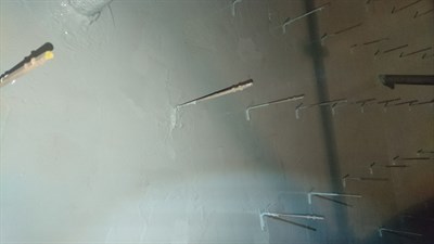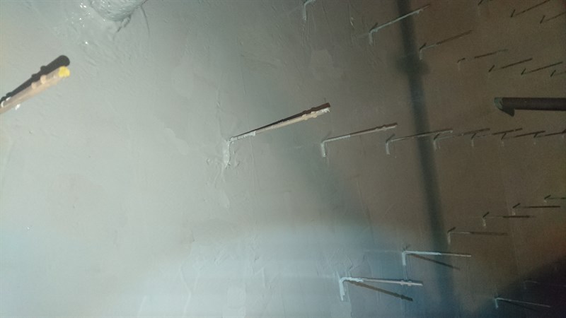 After blasting and cleaning, the oven was divided into 8 stages and there were 3 workers prepared for every stage. Together with assistant workers (mixing, transport and safety, among others) there were 30 people at once (in cooperation with the Czech Belzona team). The first coat of Belzona 1593 was applied at 375 microns. The steel prickles made the application complicated and as the customer wanted them coated also, it was not so easy. After 12 hours the second coat was applied at 375 microns. Complete coating was finished in 2 days. The application was performed in accordance with Belzona system leaflet TCC-5.