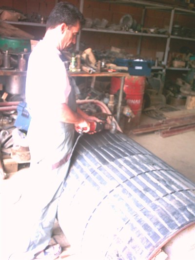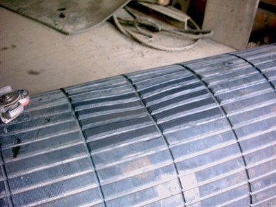 Problem: The drive drum had a 15 mm rubber cover. The surface of the drum was mechanically deformed during transportation with fork lift truck.