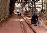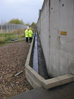 Belzona® 2221 Problem : Seal required between concrete/epoxy screed and steel rails to prevent ingress of chemicals |