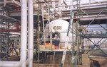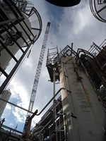 Belzona Bonds Pipe Supports on top of a Chemical Tank Roof.
