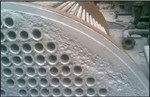 Belzona® 1591 Problem : Severe erosion-corrosion of the tube sheet and end cover caused by the hot Hydrocarbon mixture. |